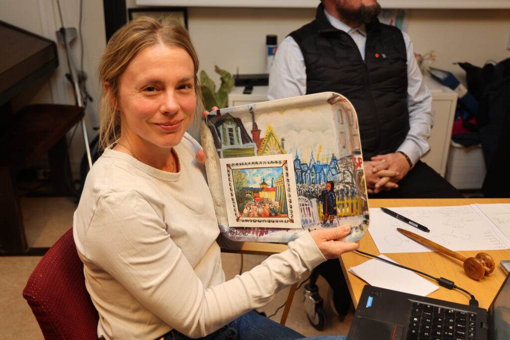 Avgående styrelsemedlemmar tackades av med brickor med Olle Olsson-motiv.